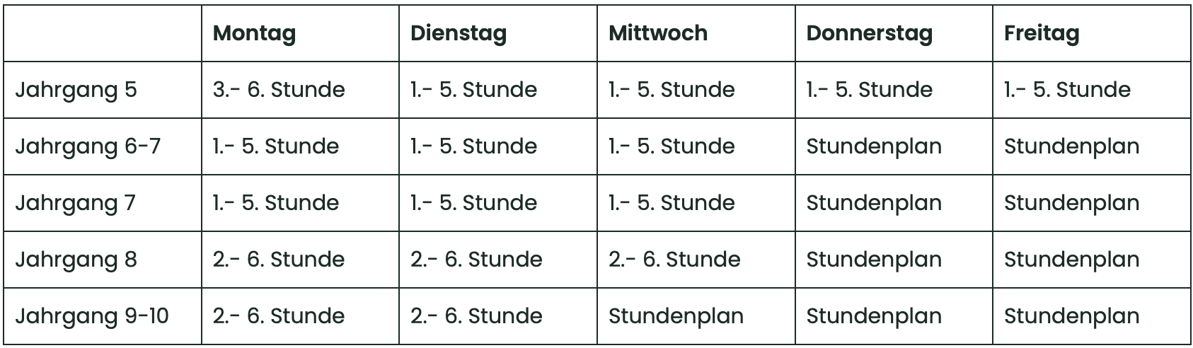 Unterrichtszeiten in der ersten Schulwoche