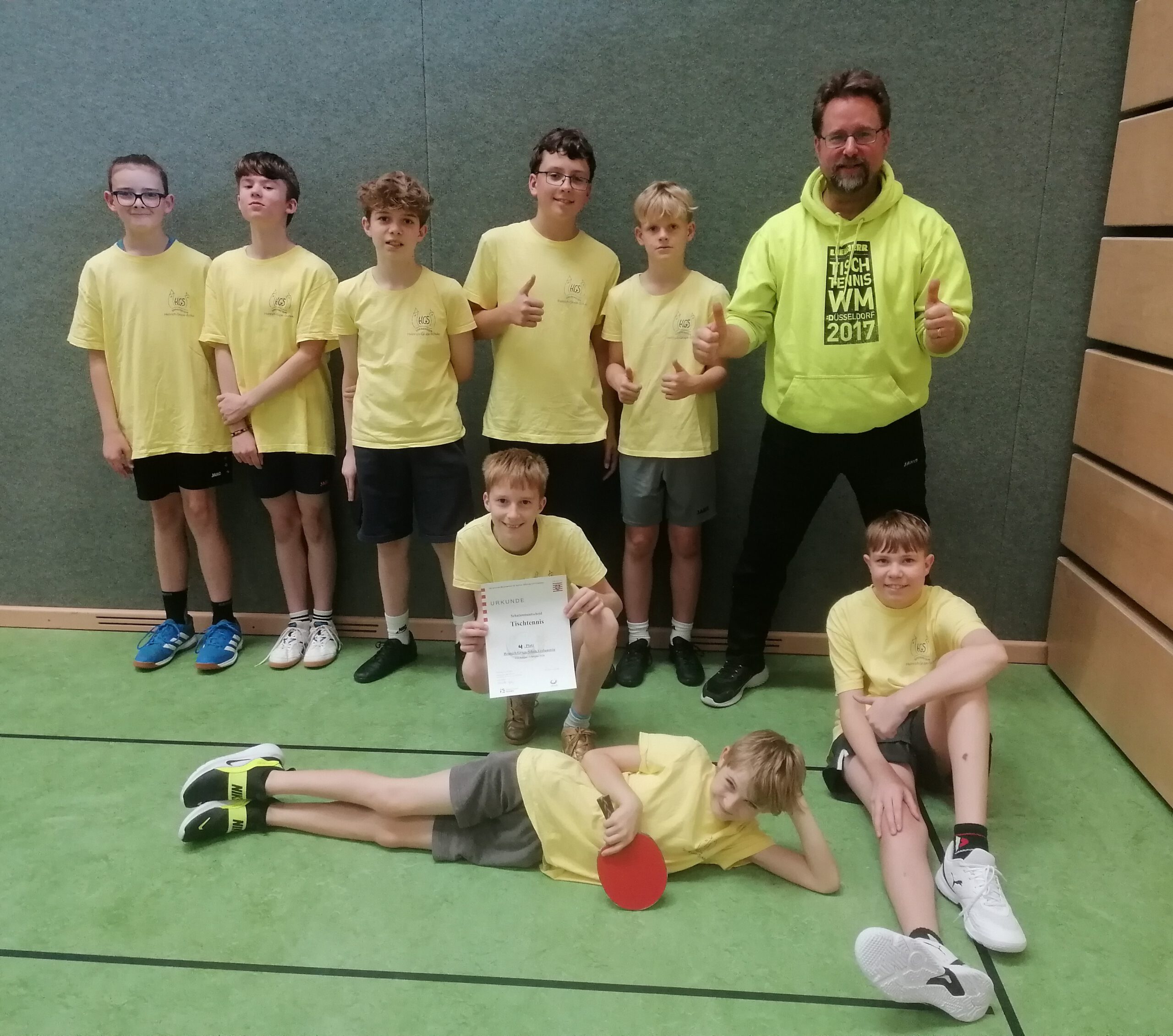 Am 1.10.2025 fand der Tischtennis „JtfO“ Schulamtsentscheid (U16) mit total neu formierter HGS – Mannschaft in Vellmar statt.
