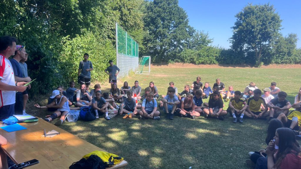 Bei tropischen Temperaturen lieferten sich die Klassen des Jahrgangs 7 im wahrsten Sinne des Wortes hitzige Duelle, die jedoch insgesamt sehr fair geführt wurden. In einem ausgeglichenen Teilnehmerfeld begann das Turnier gegen 8.45 Uhr im Modus jeder gegen jeden, sodass jedes Team vier Spiele absolvierte. In den 10-minütigen Partien merkte man den aktiven die Strapazen kaum an und alle gaben ihr Bestes.