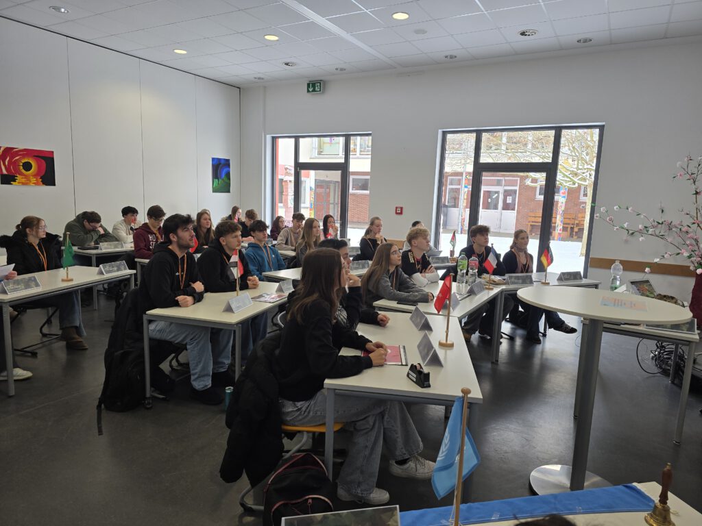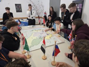 Dieser Konflikt ist über die Jahre immer komplexer geworden und betrifft nicht nur die Aspekte Sicherheit und Politik, sondern auch Wirtschaft, Kultur und Religion. Um trotzdem Handlungsmöglichkeiten und alternative Szenarien handlungsorientiert zu erleben und damit Außen-, Sicherheits-, Friedens- und Entwicklungspolitik interaktiv zu begreifen, haben die Klassen G10a und G10b im Rahmen des Politik & Wirtschafts-Unterrichts in Zusammenarbeit mit der Bundeswehr das Konfliktplanspiel zum Syrien-Konflikt durchgeführt. Dabei haben die Schülerinnen und Schüler Rollen der Staatspräsidenten, Regierungschefs und Staatsminister der beteiligten Mächte (z.B. USA, Russland, Syrien, Iran, Irak, Saudi Arabien) sowie des UN-Generalsekretariats eingenommen und im Sinne der jeweiligen Ziele versucht, den Konflikt international oder bilateral zu lösen. Dabei gelang es besonders gut, die widersprüchlichen Interessen und teilweise von Zusagen unabhängigen Handlungsweisen, wie auch im realen Leben, nachzuempfinden und zu reflektieren. Insgesamt war es dadurch eine gelungene Weiterführung des Themas Friedens- und Sicherheitspolitik und stärkt die Zusammenarbeit des Fachbereichs Gesellschaftslehre mit außerschulischen Experten.